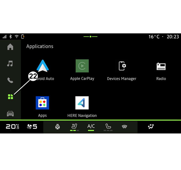 אפשר להשתמש בעולם אפליקציות , שנגיש באמצעות לחיצה על 22 כדי לעבור אל אפליקציות ממערכת המולטימדיה.
