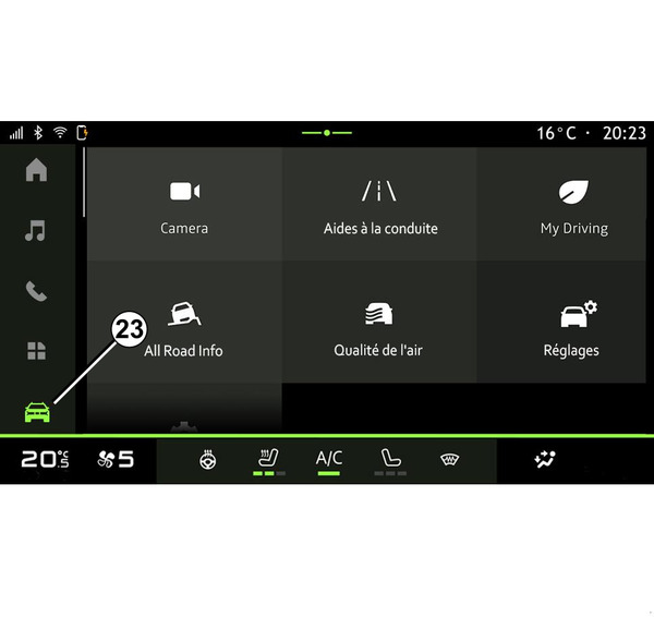 העולם רכב נגיש באמצעות לחיצה על המתג 23 ומאפשר ניהול של חלק מציוד העזר המותקן ברכב, כגון המצלמה, My driving וכו' והתאמת חלק מהגדרות מערכת המולטימדיה, כגון תצוגה, שפה וכו'.