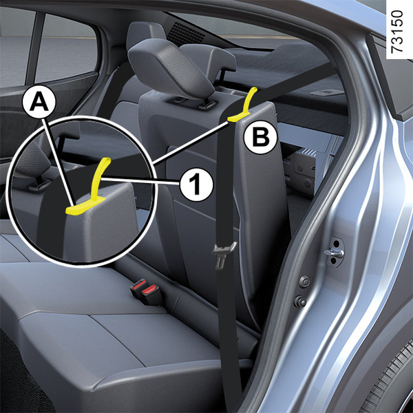 יש למשוך את הלשונית 1 ולהטות את משענת הגב B.