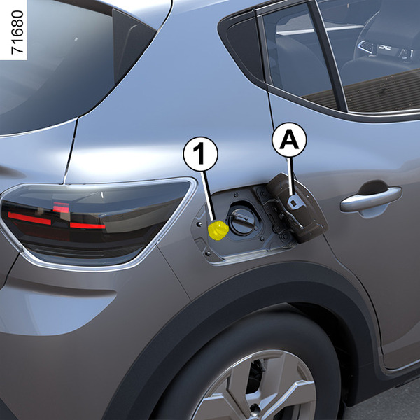 Kada je kontakt isključen, otvorite vratašca A, a zatim odvrnite čep 1.
