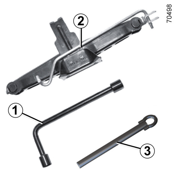 Az emelő kifejezetten az adott járműhöz készült, és a kerekek cseréjére szolgál.