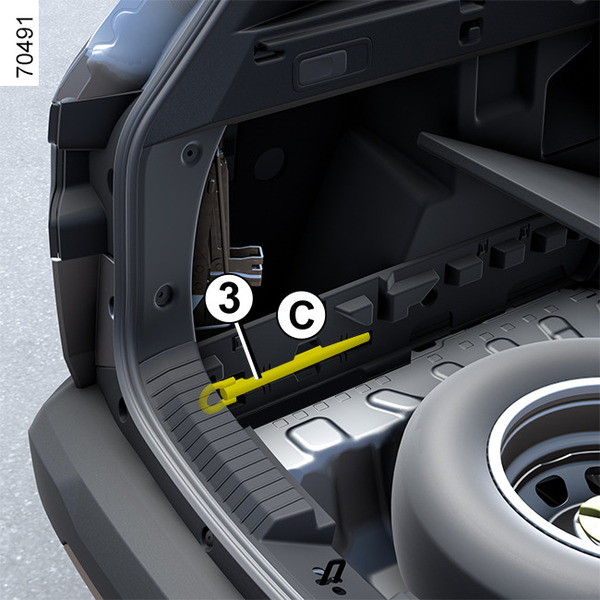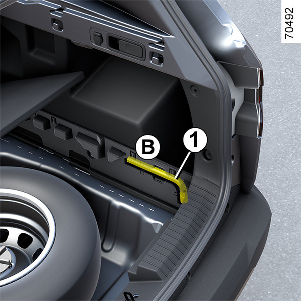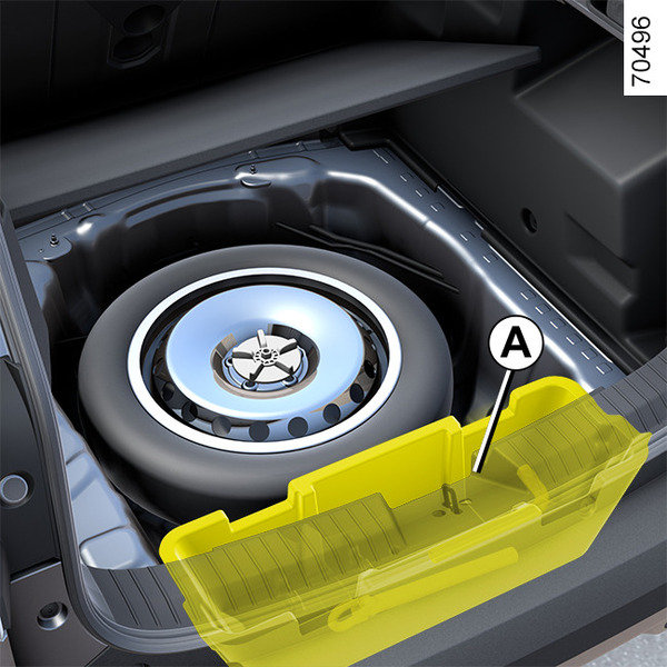 Az A, B és C szerszámkészlet a szükségpótkerék mellett vagy a csomagtérben lévő oldalsó tárolóhelyen találhatók.