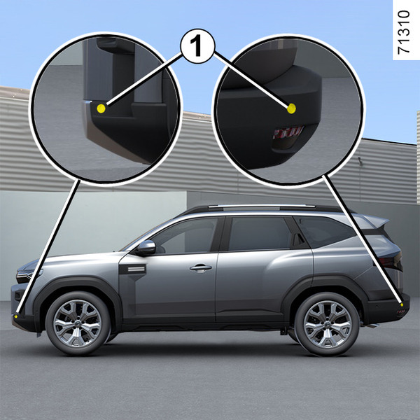 Šī funkcija izmanto sensorus 1, kas uzstādīti abās pusēs uz priekšējā un aizmugurējā bufera.