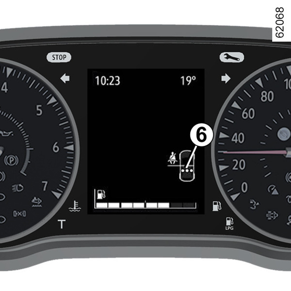 parādās centrālajā displejā, ja aizmugurējā sēdeklī kāds sēž un nav piesprādzējies ar drošības jostu. Kopā ar to katru reizi, kad kāda no drošības jostām tiek piesprādzēta vai atsprādzēta, aptuveni uz 60 sekundēm parādās ikona 6.