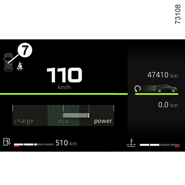parādās centrālajā displejā, ja aizmugurējā sēdeklī kāds sēž un nav piesprādzējies ar drošības jostu. Kopā ar to katru reizi, kad kāda no drošības jostām tiek piesprādzēta vai atsprādzēta, aptuveni uz 60 sekundēm parādās ikona 7.
