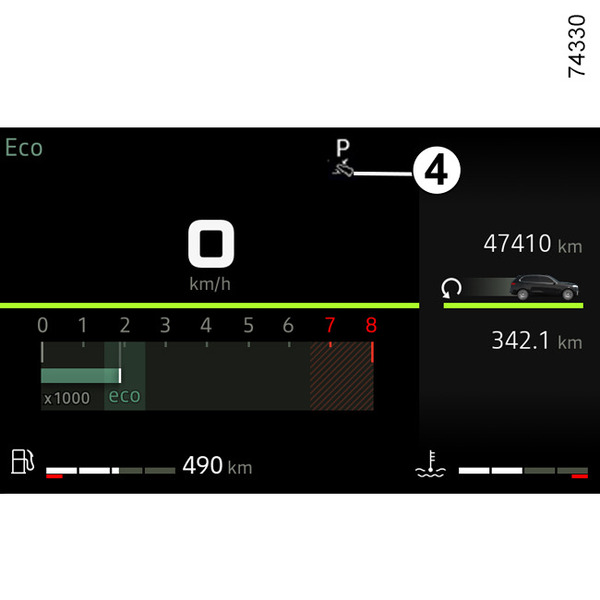 Ar kāju uz bremžu pedāļa (brīdinājuma indikators 4 pazūd no displeja), izslēdziet P pozīciju.