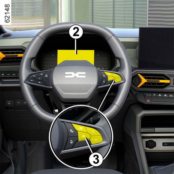 Trykk på bryteren 3OK for å fjerne varselet som vises i instrumentpanelet. Etter at du har slettet meldingen, fortsetter systemet å overvåke distraksjoner og aktiverer en ny advarsel om nødvendig.