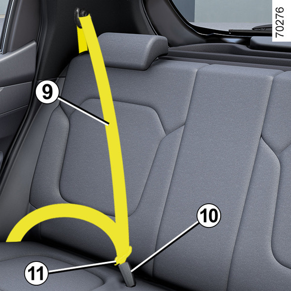 Rol de gordel 9langzaam uit en klik de gesp 11 in de grendel 10.