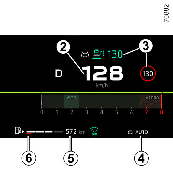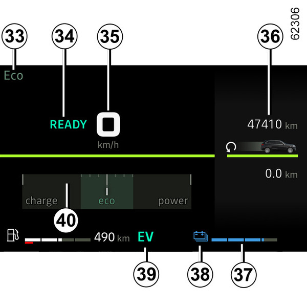 Deze wordt op een andere manier weergegeven volgens de gekozen instelling op het instrumentenpaneel. Afhankelijk van de geselecteerde rijstijl wordt deze mogelijk niet weergegeven.