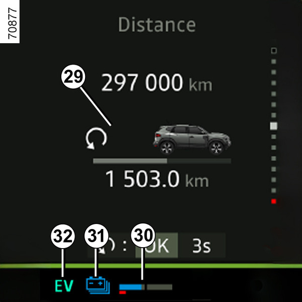 Als het laadniveau blijft dalen, wordt het elektrische bereik niet meer getoond.