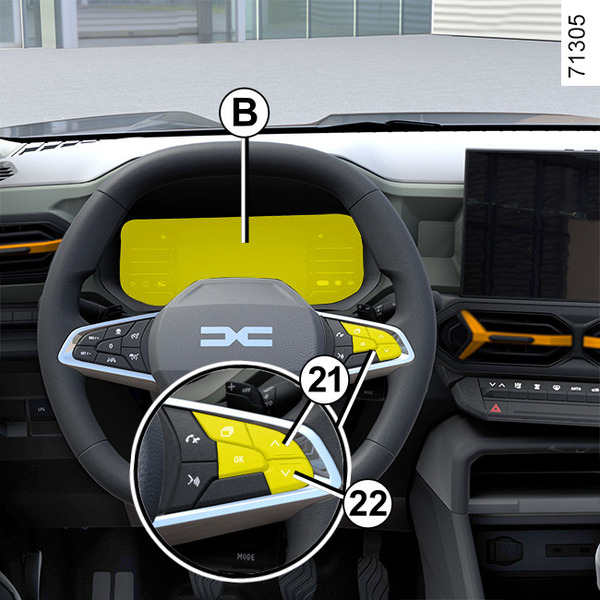 Gebruik, afhankelijk van de auto, de knop 21 of 22 om te bladeren door de diverse widgets op het instrumentenpaneel: