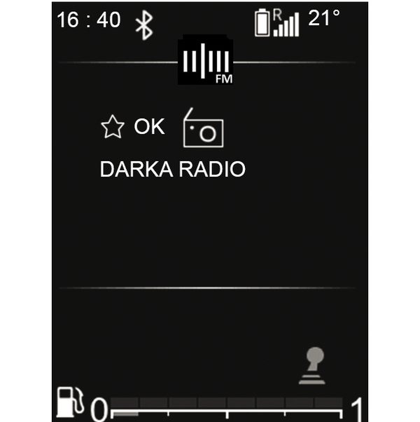 Stacja radiowa, na której zatrzymasz się, za chwilę będzie automatycznie odtwarzana. Aby wrócić do listy stacji, nacisnąć