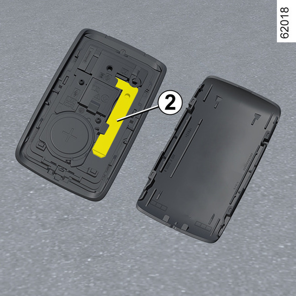 - Wprowadzić końcówkę klucza 2 w rowek 3 na dole obudowy B w drzwiach kierowcy;
