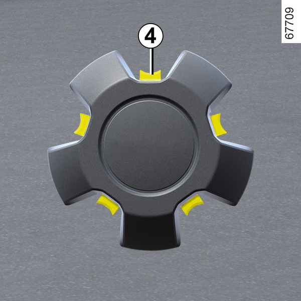 W celu założenia kołpaka, ustaw odpowiednio zaczepy 4 względem śrub 3.