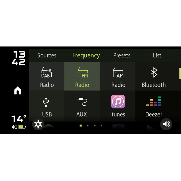 - As diversas bandas de rádio: "DAB", "FM" ou "AM" (consoante a disponibilidade);