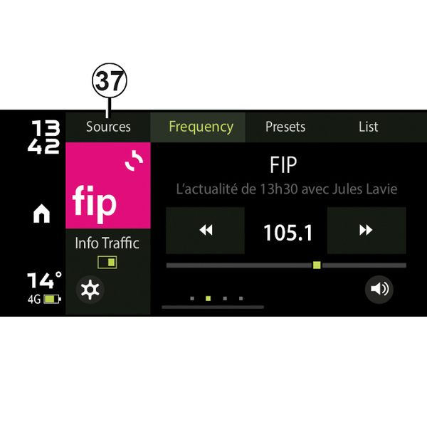 - As diversas fontes de áudio multimédia: Bluetooth®, USB (consoante a disponibilidade);