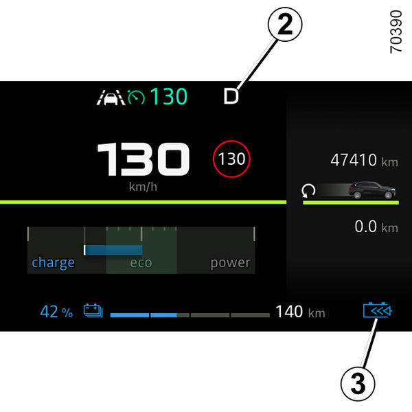 O testemunho 3 informa o condutor sobre os níveis da travagem regenerativa.