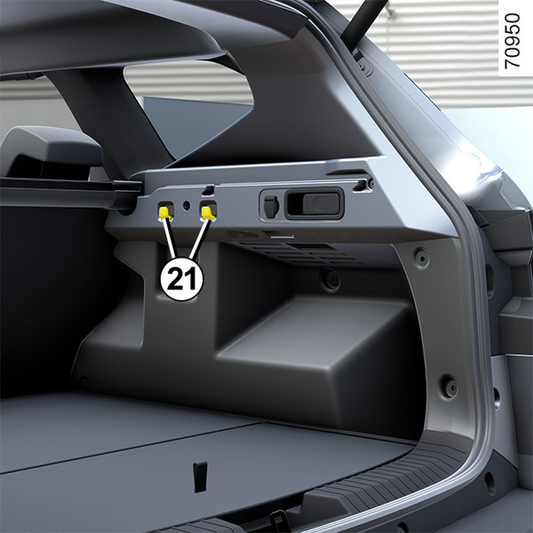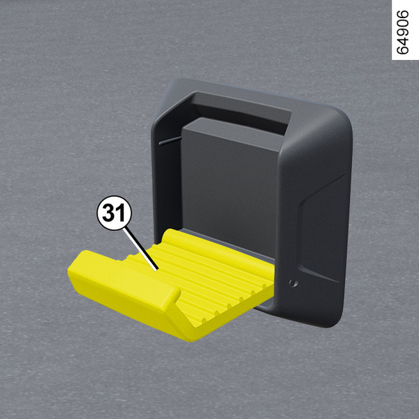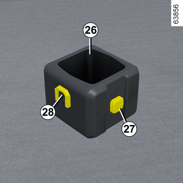 În funcţie de vehicul, acestea sunt proiectate pentru a fixa cubul 26, becul 29, cârligul pentru sac 31 (situat în portbagaj) sau accesoriile aprobate de Departamentul Tehnic.