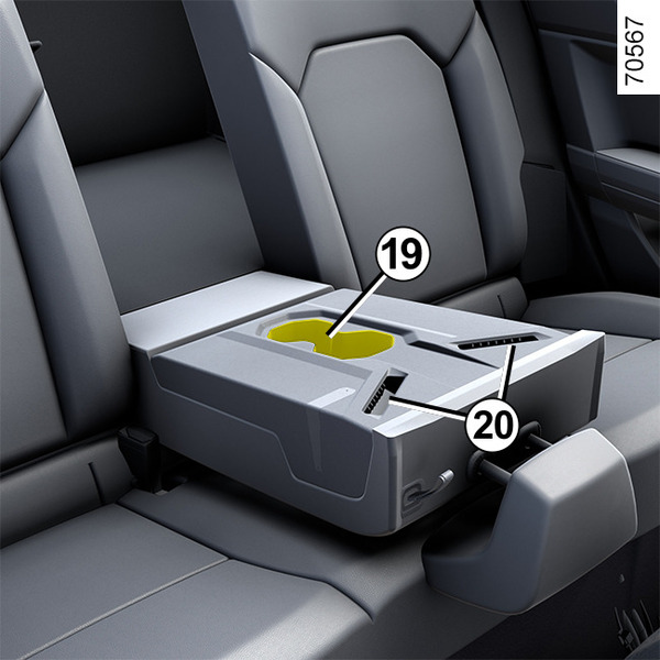 Pentru a accesa portpaharele 19 sau suportul pentru telefon 20, trageţi cureaua 18.