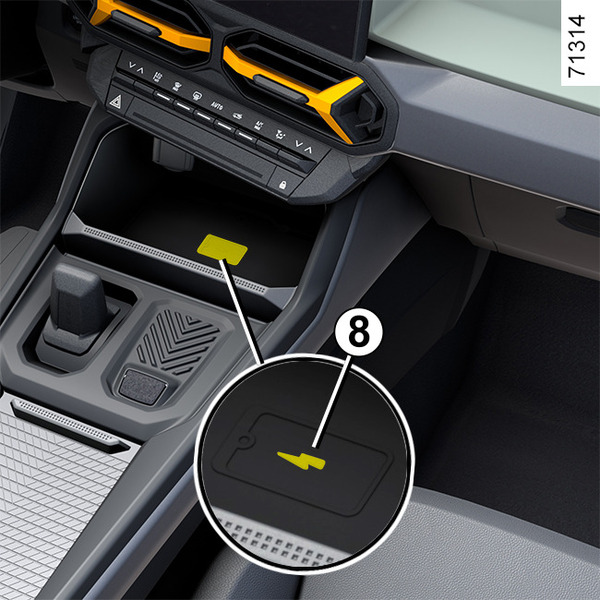 În funcţie de vehicul, simbolul 8 indică faptul că zona 7 poate fi folosită pentru a vă încărca telefonul fără a utiliza un cablu de încărcare.