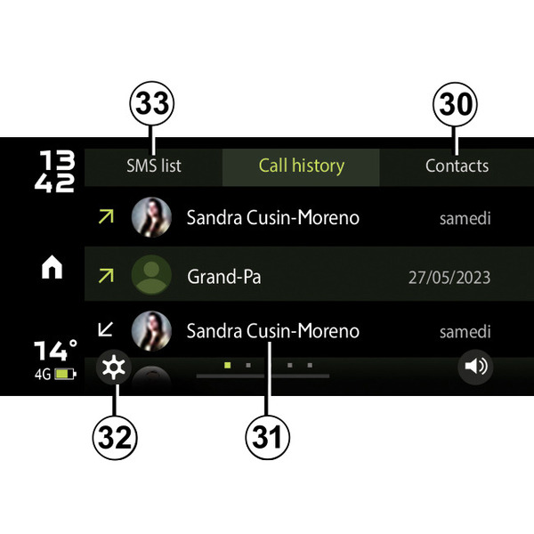 Sistemul audio poate fi utilizat pentru a gestiona recunoaşterea vocală prin intermediul smartphone-ului dvs. (dacă este compatibil). Acesta permite comandarea funcţionalităţilor smartphone-ului dumneavoastră cu ajutorul vocii, ţinând în acelaşi timp mâinile pe volan.