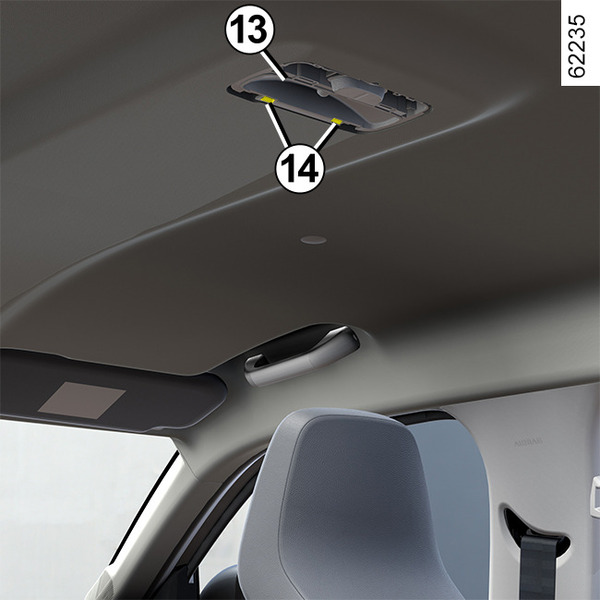 Отсоедините фонарь 16 с помощью отвертки с плоским лезвием или похожего инструмента, надавив на фиксатор 17 и повернув фонарь внутрь перчаточного ящика.