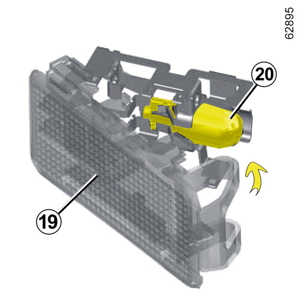 Отсоедините рассеиватель 19 и достаньте лампу 20.