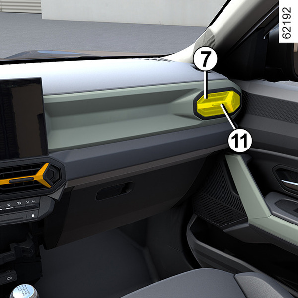 Открывание: переместите язычок 11 в сторону от центра салона.