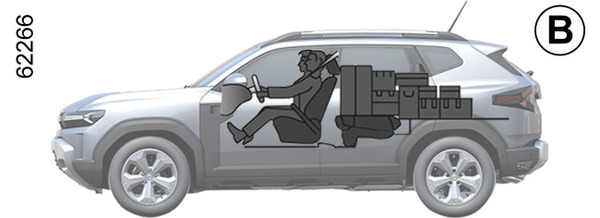 спинки передних сидений с разложенными спинками задних сидений, как и в случае максимальной нагрузки (пример B).