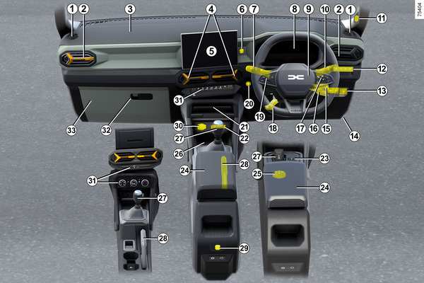 Multimediálna obrazovka alebo, v závislosti od vozidla, úložný priestor.