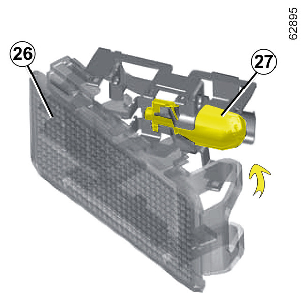 Sprostite razpršilno steklo 26 za dostop do žarnice 27.