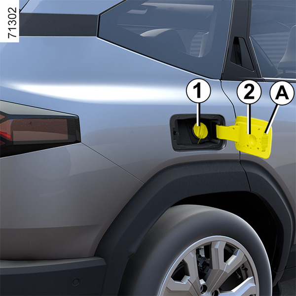 Pri odklenjenem vozilu za odpiranje vratc odprtine za gorivo A pritisnite območje B, nato pa ga spustite. Odprite jih in odvijte pokrovček posode za gorivo 1.