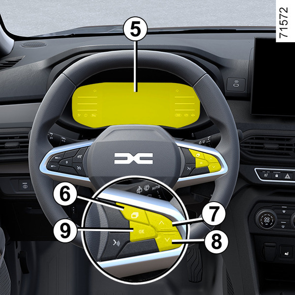 , a zatim pritisnite prekidač 9 „OK“; - uzastopno pritiskajte kontrolu 7 ili 8 dok ne dođete do menija „POMOĆ PRI VOŽNJI“, a zatim pritisnite prekidač 9 „OK“;