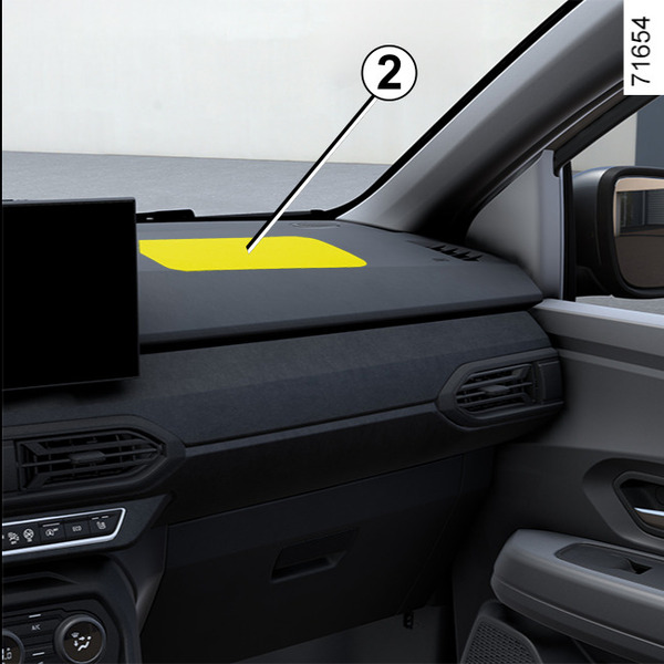 Oznaka „Airbag“ na volanu, kontrolnoj tabli (u oblasti airbag2), kao i, u zavisnosti od vozila, oznaka na donjem delu vetrobrana, označavaju prisustvo ove opreme.