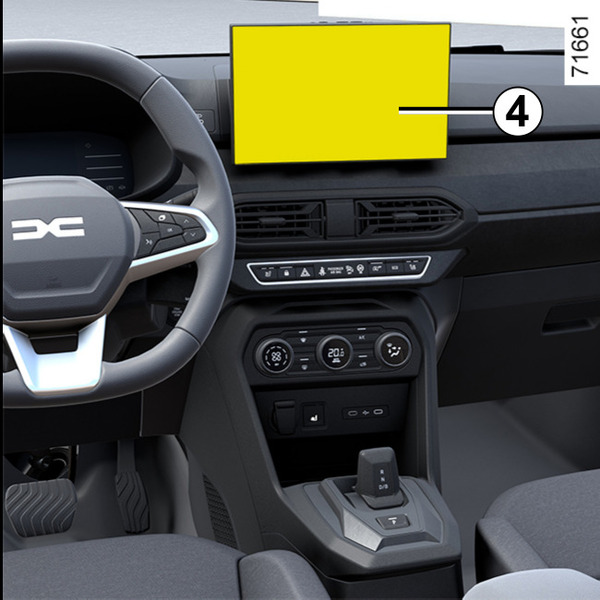 - u automatskom režimu, prilikom prebacivanja u rikverc: sistem se aktivira i kamera koja se nalazi na vratima prtljažnika prenosi sliku područja iza vozila na ekran 4;