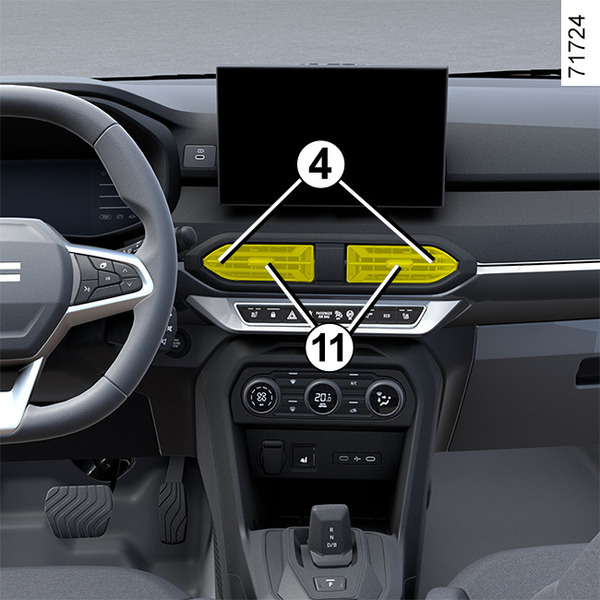 Centralni 4 i bočni ventilacioni otvori 1 i 6