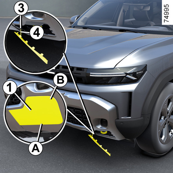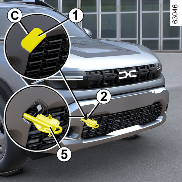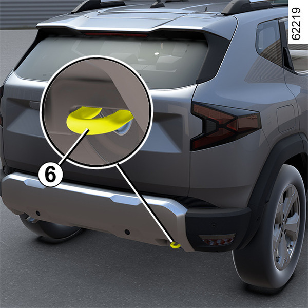 - önde: bağlantı noktası 2 veya araca bağlı olarak çekme halkası 5Aletler ve bağlantı noktası;