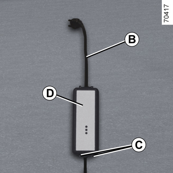 For safety reasons, the use of a charging cord not recommended by the manufacturer is strictly forbidden. Failure to follow this instruction can lead to risks of fire or electric shock that can prove fatal. For information on a charging cord suited to your vehicle, please consult an authorised dealer.