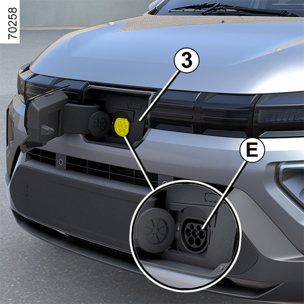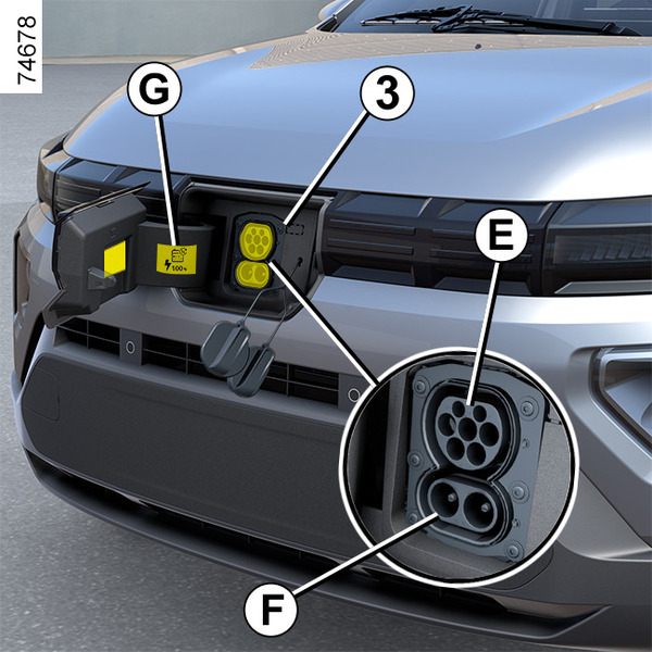 Depending on the vehicle, E and F sockets are protected by plugs. Before connecting a charging cord :