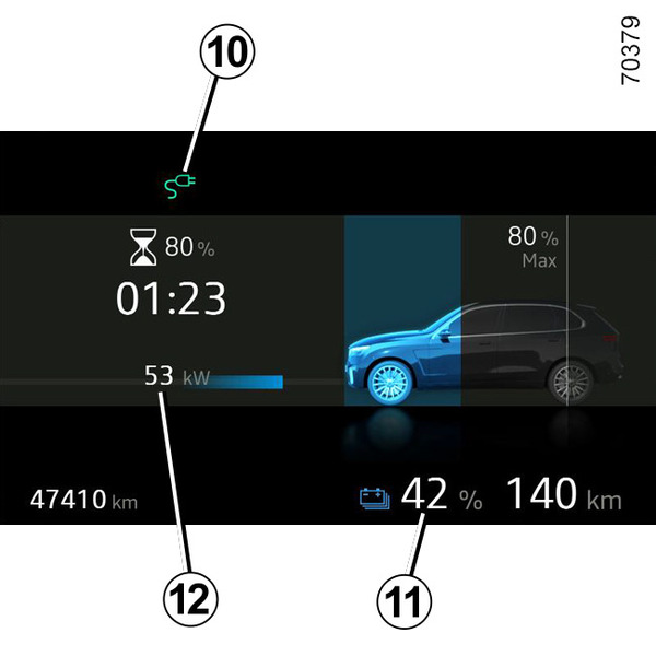 • the warning light 10 indicates that the vehicle is connected to a power supply;