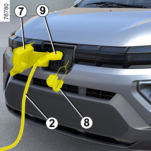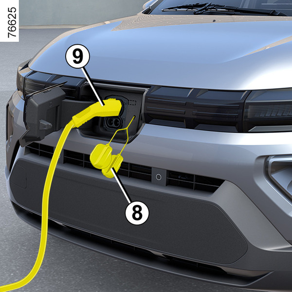 • depending the situation, if the vehicle charging cord is still locked after pressing the unlocking button on the remote control, repeat the operation by pressing the unlocking button twice consecutively. One, to stop the charge and one to allow the unlocking of the handle 9.