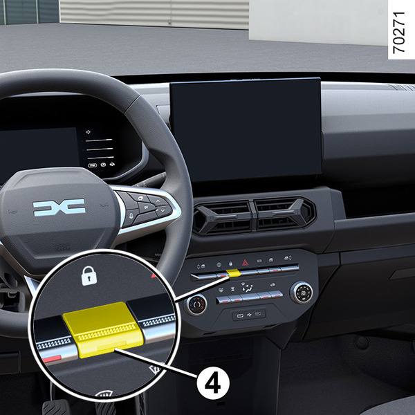 If you need to transport objects with the boot open, the other opening elements can still be locked : with the engine stopped, press switch 4 for more than five seconds to lock the other opening elements.