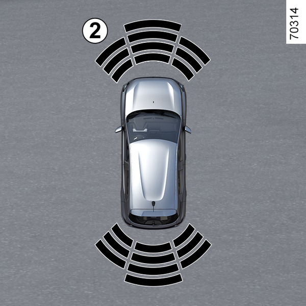 The frequency of the beep will increase as the obstacle approaches and will become a continuous beep at around 30 cm from an obstacle detected in front of the vehicle or behind it, depending on the vehicle.